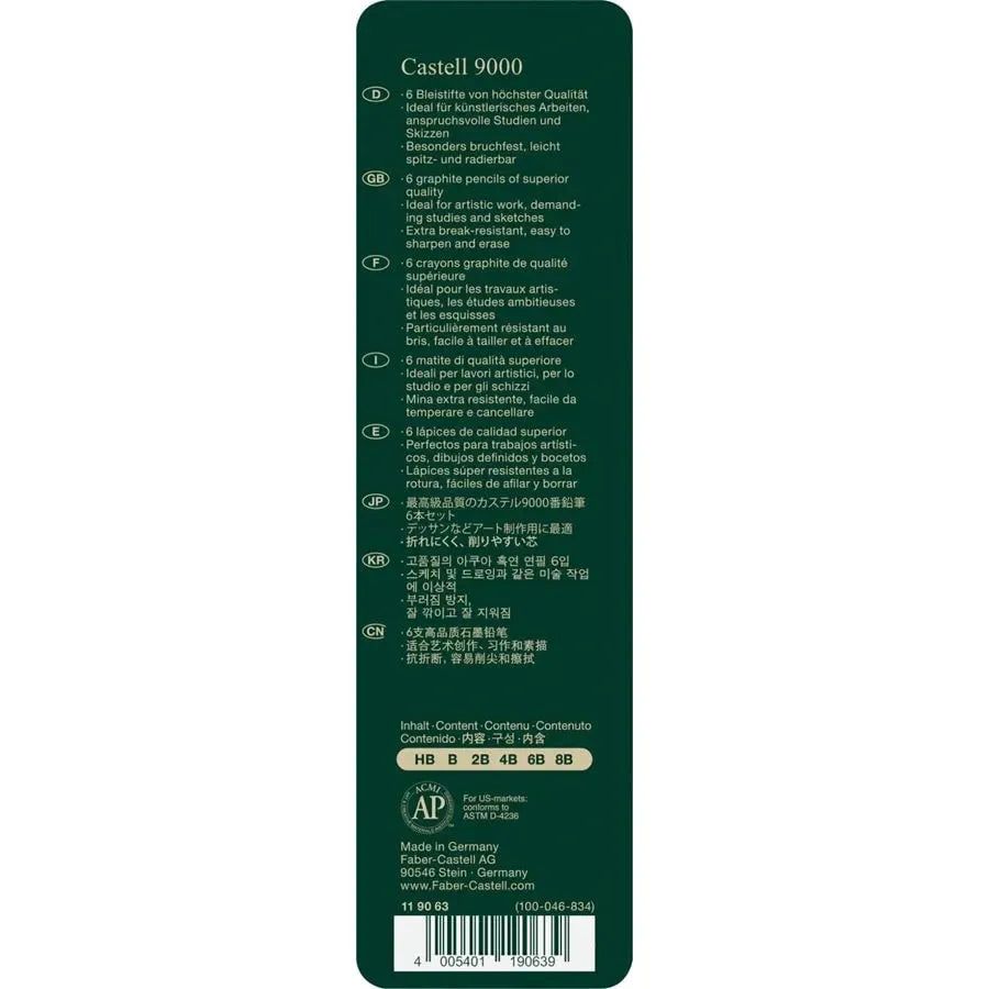 El Castell 9000 va ser llançat pel Comte Alexander von Faber-Castell el 1905. La seva qualitat i varietat de graduacions l'han convertit en el favorit d'il·lustradors i artistes. La seva mina encolada a tota la longitud del llapis és especialment resistent al trencament. El Castell 9000 està disponible en 16 graus de duresa, convertint-se en el llapis perfecte per a aplicacions tècniques i artístiques.