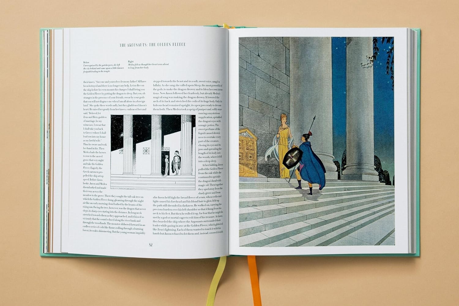 Esta edición contiene 47 relatos que recogen las historias más famosas de la mitología griega, desde Prometeo, los argonautas y Teseo, hasta la guerra de Troya y la Odisea de Homero. Los textos han sido seleccionados de la obra de referencia Sagen des klassischen Altertums (Dioses y héroes de la antigua Grecia) de Gustav Schwab (1792-1850). Se presentan acompañados de magníficas ilustraciones de 29 artistas, entre ellos destacados representantes de la edad de oro de la ilustración de libros y del movimiento Arts and Crafts, como Walter Crane (1845-1915), Arthur Rackham (1867-1939), William Russell Flint (1880-1969) y Virginia Frances Sterrett (1900-1930).