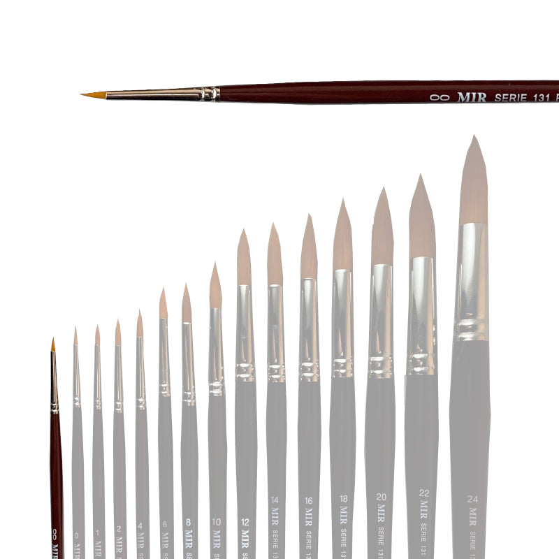El pincel MIR Ref. 131 Toray combina precisión, elasticidad y durabilidad para trabajos de restauración y pintura exigente. Su pelo sintético Toray de primera selección ofrece una excelente recuperación de forma y una carga uniforme de pintura, imitando el comportamiento del pelo natural con mayor resistencia al desgaste.