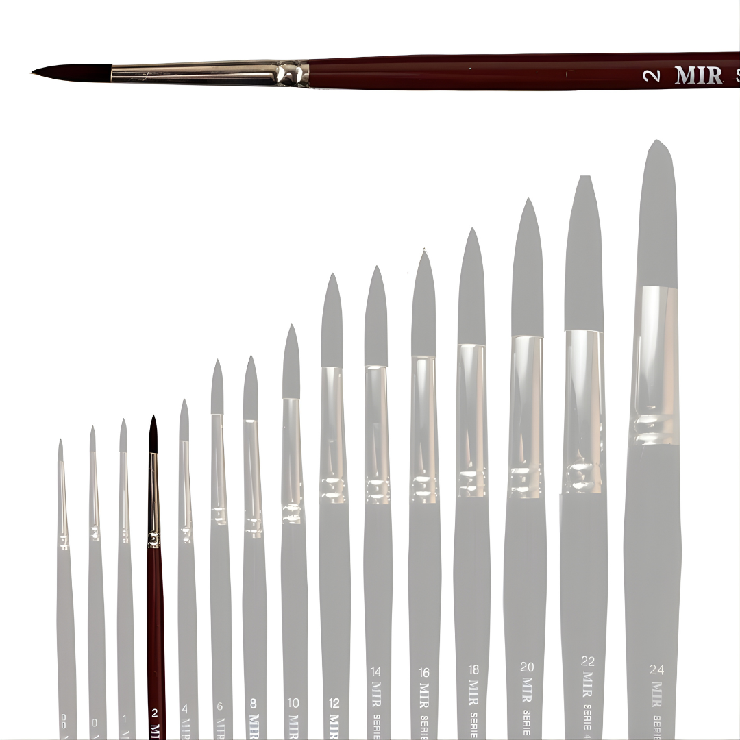 El pincel MIR Ref. 400 Teijin Sintético combina precisión, elasticidad y resistencia para trabajos de restauración, retoque y pintura de detalle. Su fibra japonesa Teijin de alta calidad ofrece una excelente recuperación de forma y una carga uniforme de pintura, imitando el comportamiento del pelo natural con una durabilidad superior.