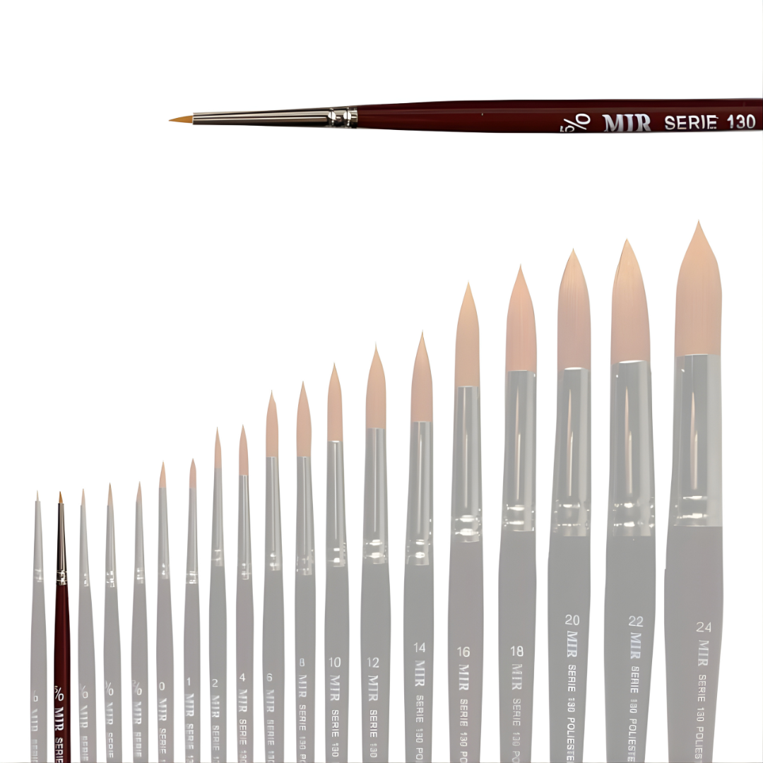 El pincel MIR Ref. 130 Toray Sintético combina suavidad, precisión y control en los trazos finos, siendo ideal para acuarela, restauración, miniaturas y trabajos de detalle. Su fibra Toray de primera calidad ofrece una excelente respuesta elástica, buena carga de pintura y una recuperación uniforme tras cada uso, imitando el comportamiento del pelo natural con una durabilidad superior.